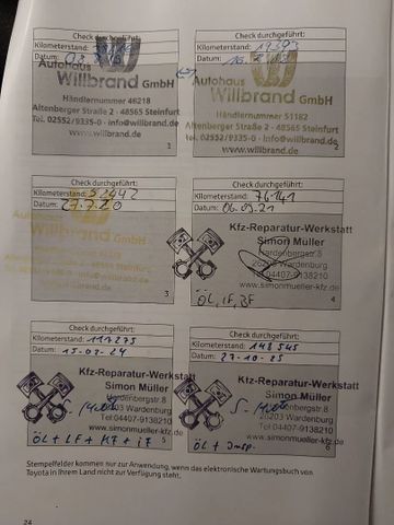 2.Sitzreihe mit Sitzbank geteilt/klappbar, 3. Bremsleuchte, 3.Sitzreihe mit Sitzbank geteilt/klappbar, Airbag Beifahrerseite abschaltbar, Airbag Fahrer-/Beifahrerseite, Audiobedienung am Lenkrad, Audiosystem: Multimedia Toyota Pro Touch, Automatische Stabilitäts-Control und Traktion (ASC + T), Außenspiegel elektr. verstell-, heiz- und anklappbar, Beifahrereinzelsitz, Bordcomputer, Bremsassistent, Chromeinfassung für Nebelscheinwerfer, Einparkhilfe vorn und hinten, Einschaltautomatik für Fahrlicht, Elektr. Bremskraftverteilung, Fahrassistenz-System: Berganfahrkontrolle (HAC), Fahrassistenz-System: Totwinkel-Assistent (BLIS), Frontscheibe Verbundglas, Gepäckraum-Abtrennung (Netz), Gepäckraumabdeckung / Rollo, Gepäcksicherungsnetz, Heckflügeltüren mit Verglasung, Heckscheibe heizbar, Heckscheibenwischer, Innenausstattung: Aluminium-Dekor, Innenspiegel mit Abblendautomatik, Isofix-Kindersitz-System, Karosserie/Aufbau: Kombi, Klimaautomatik 2-Zonen, Kopf-Airbag-System, Kopfstützen hinten, Lenksäule (Lenkrad) verstellbar, Leseleuchte, Motor 2,0 Ltr. - 130 kW D-4D KAT, Radstand 3275 mm, Reifendruck-Kontrollsystem, Reserverad in Fahrbereifung, Rückfahrkamera, Schadstoffarm nach Abgasnorm Euro 6, Schiebetür rechts mit Verglasung, Schwellerabdeckung / -verkleidung Wagenfarbe, Seitenairbag hinten, Seitenairbag vorn, Sitz vorn links höhenverstellbar, Sitzausstattung: 8-Sitzer, Sitzheizung vorn, Sonnenschutzrollo an Seitenscheiben hinten, Stop&Go-System (TSGS), Stoßfänger mit Chromeinlage, Türgriffe außen verchromt, Wärmeschutzverglasung getönt , Innenspiegel automatisch abblendend, Regensensor, Sitzheizung vorn